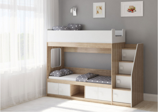 Двухъярусная кровать Легенда D605.3 - современный дизайн и и продуманные места хранения .
