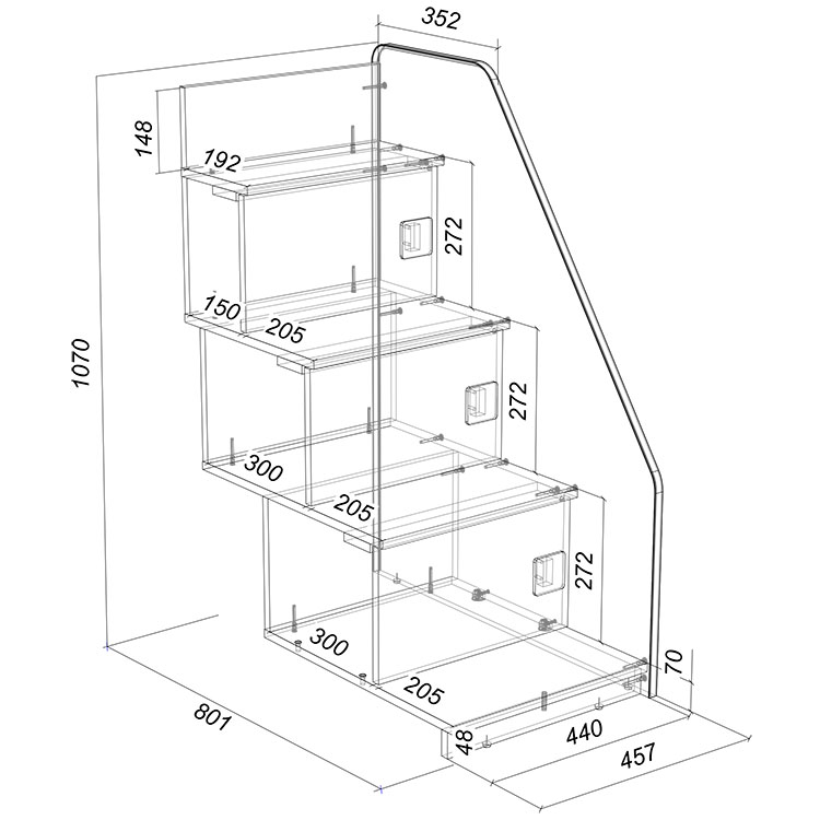Лестница из 4 ступеней, сочетается со всеми кроватями серии A,B,C,D,E,F. Предназначена для боковой установки к кровати.